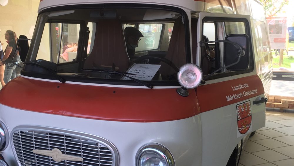 Neuste Technik Vorführung mit Übertragung zum Telenotarzt der Firma GHC aus einem alten Auto.
